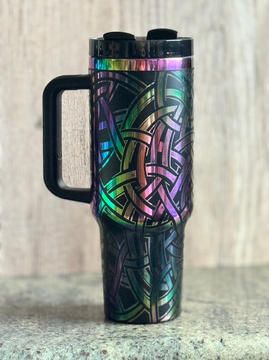 These tumblers aren’t made by Stanley or Yeti—I source them specifically for their unique finishes, like gold or rainbow plating. They perform just as well as the big-name brands, with one big difference: theirs don’t come with engravings like these. Yours can.