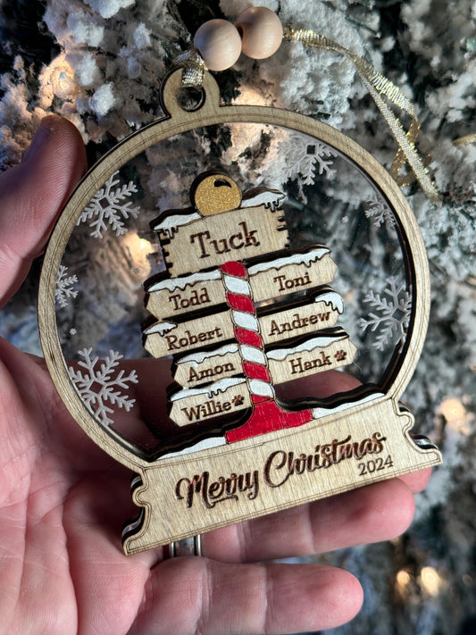 North Pole Family Sign Ornament – Hand-Painted Keepsake