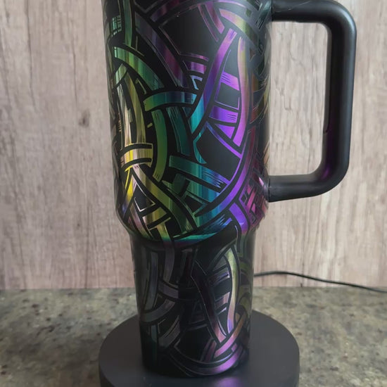 Carry timeless tradition with a modern edge. This 40oz tumbler features an intricate Celtic knot design that wraps around the body in bold detail. The pattern creates a striking, dimensional look that makes this piece stand out while staying versatile enough to pair with multiple finish styles.