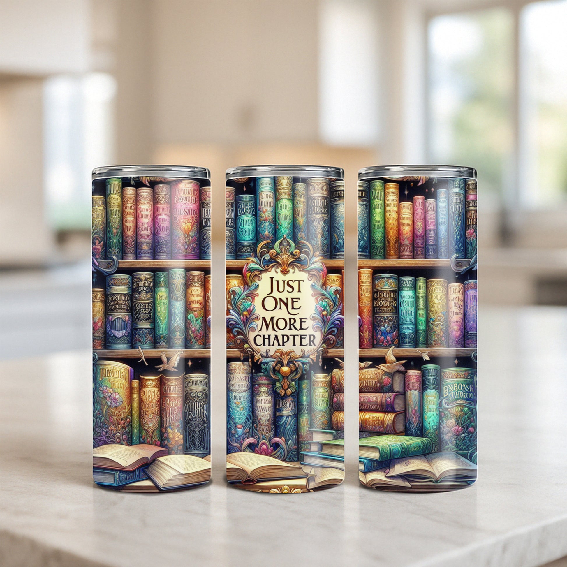 Wrapped in a cascade of richly detailed bookshelves and enchanted cover art, this tumbler is made for late-night readers and book hoarders alike. With ornate flourishes framing the irresistible mantra “Just One More Chapter,” it’s a gentle nudge to keep reading... forever.