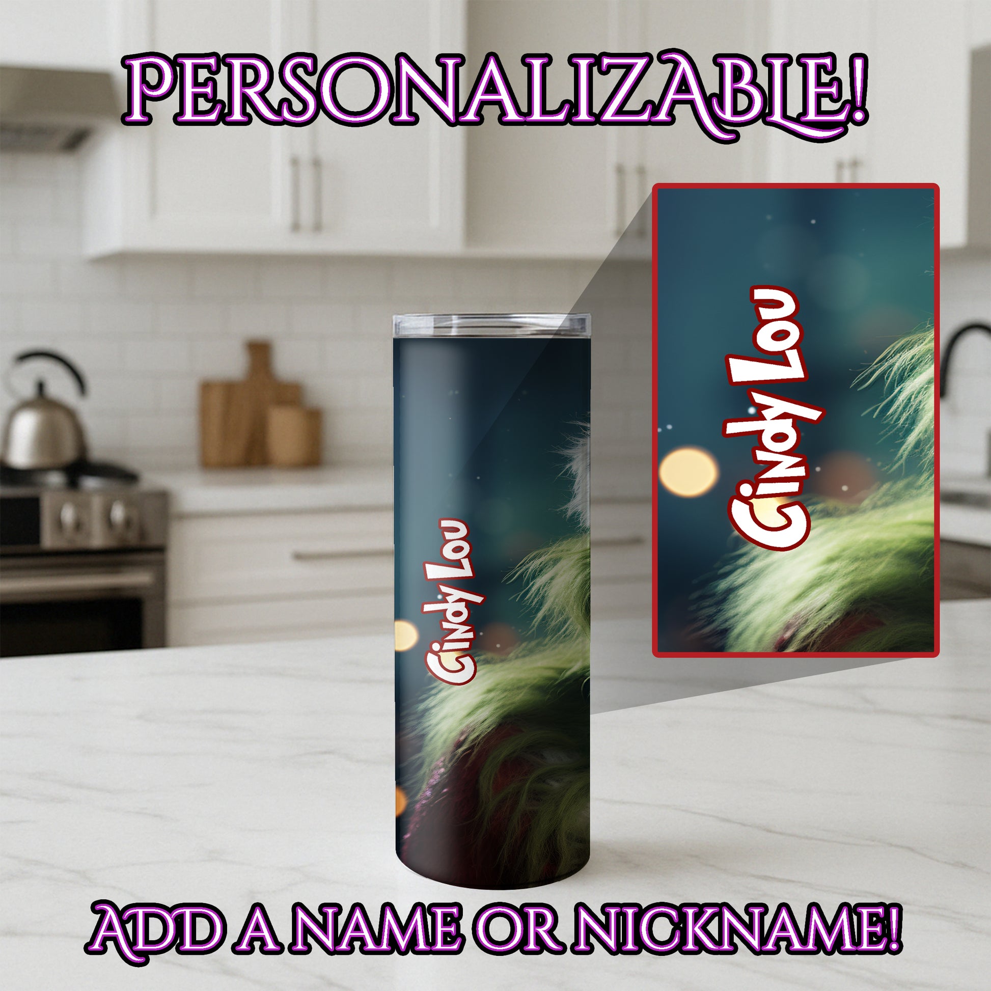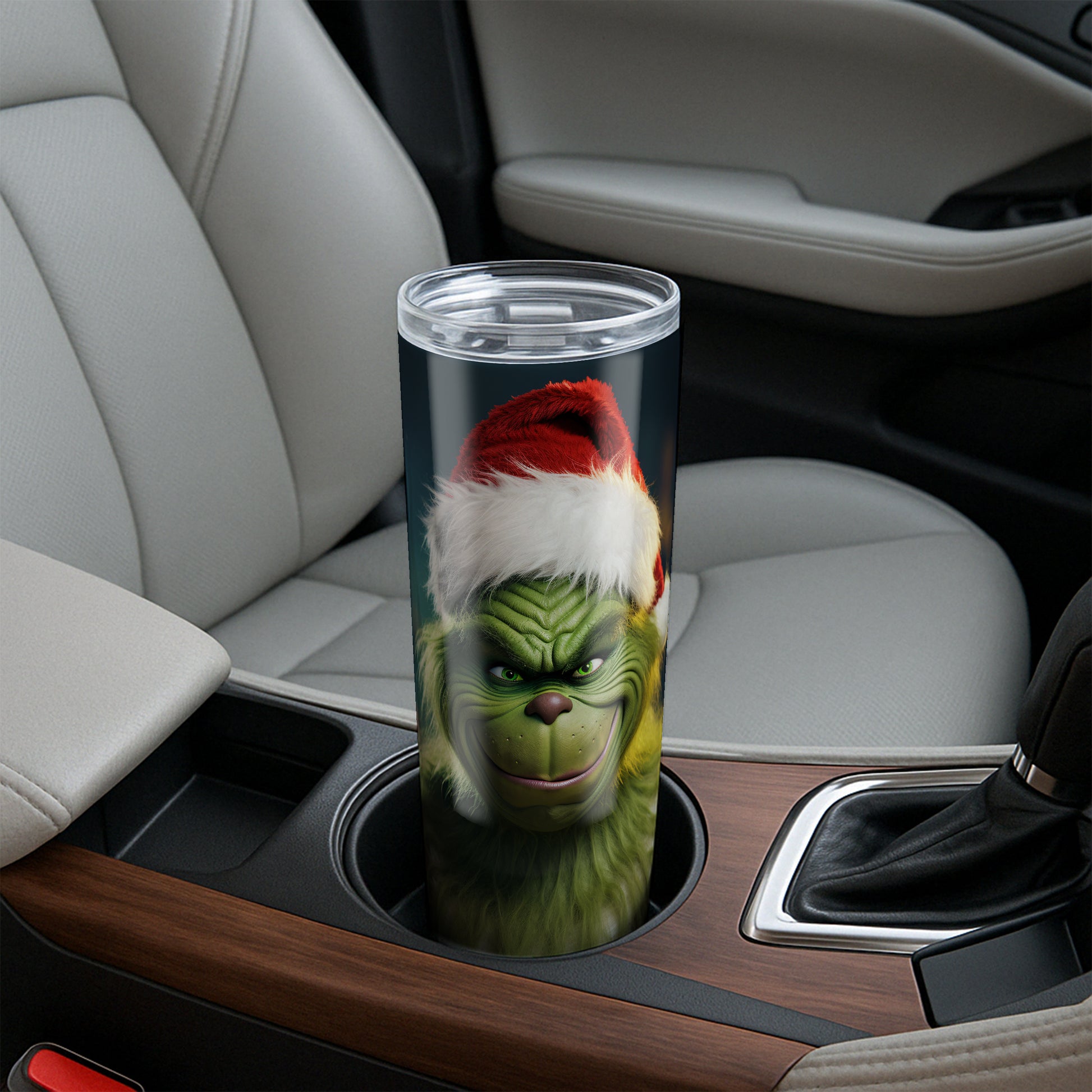 This mischievously festive tumbler features everyone's favorite holiday grump with a smirk that says, “I'm up to no good.” Perfect for sipping cocoa while silently judging the cheer around you—or maybe even stealing a few hearts along the way.