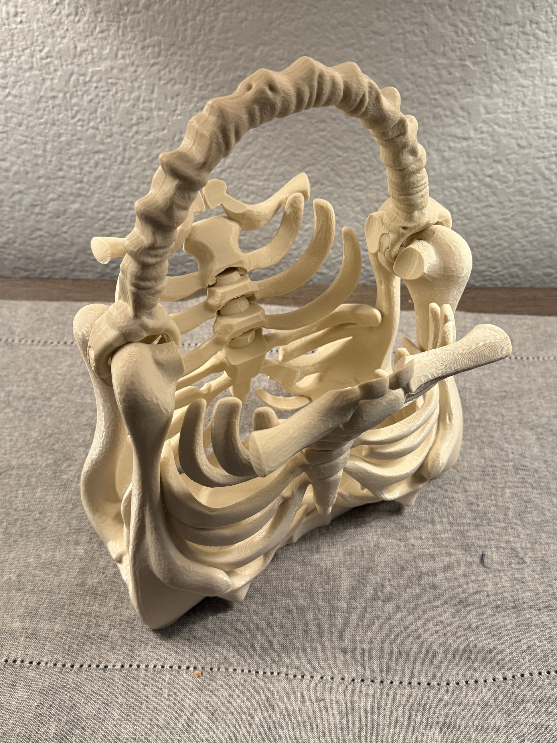 Turn heads with this one-of-a-kind skeletal statement piece. This full-sized rib cage handbag isn’t just visually striking — it’s made to last. Crafted from high-quality PETG, this bag offers superior strength and flexibility compared to the more brittle PLA used in similar prints. No cracks, no snap-offs — just bold, reliable style.