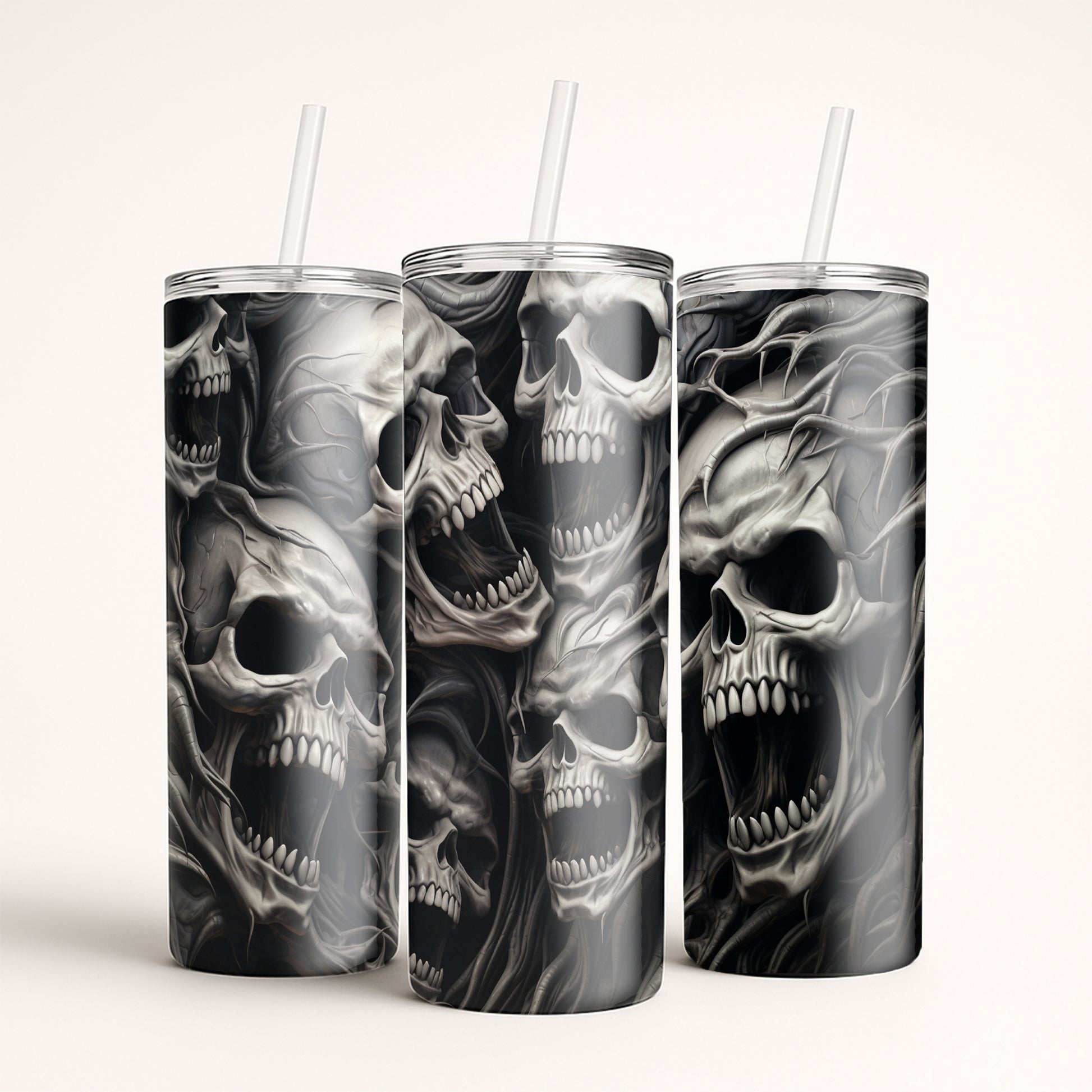 Not for the faint of heart. This terrifyingly intense design features a chaotic storm of screaming skulls, twisted roots, and shadows that look like they might reach out and grab you. If you like your drinks with a side of dread and dark vibes, this is your go-to tumbler.